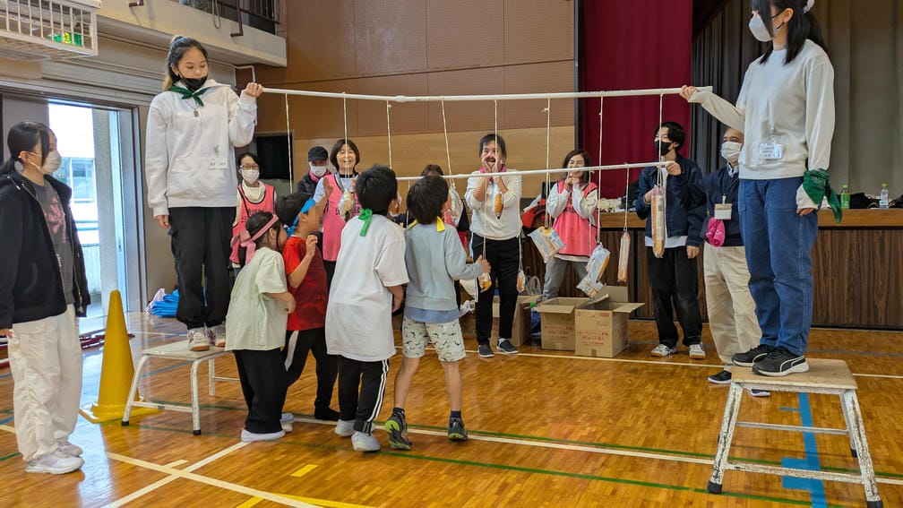 さて、片付けが終わった後は反省/報告会です。パン食い競争が子どもも保護者も楽しんでくれていたのですが、やはり衛生面に懸念が残ります。包装はきれいか?落ちたものは大丈夫か?特に外では厳しいのでは?もう少し強く吊るしたい。でもそうすると嚙んだときに取りにくい…などなど、たくさんの改善/改良点が挙がりました。子ども達がより楽しめるためには・より安全に遊んでもらうためには・より円滑に運営するためには…と、委員のみんなが真剣に考えてくれた意見を次に活かして、より良い活動を行っていきます!